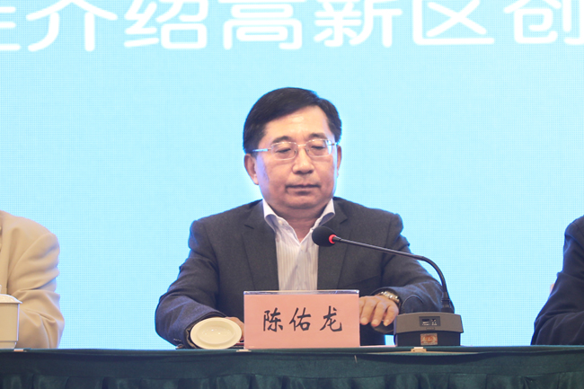 陈佑龙介绍了高新区的创新创业情况,展望了以智能制造装备为特色主导,以大健康、软件与信息技术为两大重点,以科技服务为强力支撑的“121”产业方向,致力推进大众创业、万众创新,着力打造国家创新型特色园区的美好发展愿景。