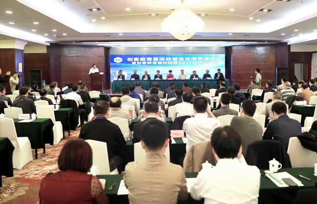 宁晓明致辞。他介绍了我校的基本情况、创办江苏海洋大学的进展及学校开展创新创业教育改革的经验。宁晓明指出,学校始终将创新创业教育作为推进学校教育教学综合改革的着力点和突破口,重点培养学生的创新精神、创业意识和创新创业能力。学校从加强顶层设计入手,搭建创新创业教育、实训、孵化三级平台,通过课内外结合、线上线下互补、一二课堂并举,着力落实“2+X”创新创业教育课程体系,形成了开放实验室、创客工场、创业街区,大学科技园科技企业孵化器、技术转移中心等全要素、开放式的创新创业实践载体,有效增强了学生的实践应用与创新创业能力,成效显著。