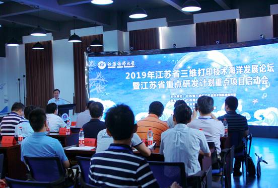 7月6日2019年江苏省三维打印技术海洋发展论坛暨江苏省重点研发计划重点项目启动会在我校虚拟现实VR教学中心隆重举行。副校长许兴友教授、江苏省三维打印产业技术创新战略联盟副理事长田宗军教授、省生产力促进中心产业规划与军民协同创新服务处处长陈量、江苏省产业技术研究院战略规划与业务管理部部长王霄、连云港市高新区管委会副主任商显福以及来自南京大学、南京航空航天大学、南京师范大学等高校的专家学者50余人参会。