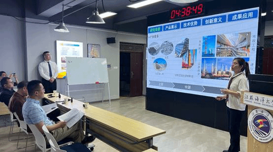首先,“桩连必合”团队负责人崔洪阳同学按照“挑战杯”路演标准进行5分钟的项目介绍,向各位评委展示汇报了本次“挑战杯”的项目——免焊接混凝土桩快速机械连接器。汇报完成后,三位评委老师针对本项目进行了系统详细的指导,团队成员钮硕硕同学作为答辩人思路清晰,专业知识过硬,仔细回答了每位评审老师的问题。三位评审专家对本次项目进行了综合评审,并与项目团队进行交流互动,既肯定本次项目的亮点、优势,也客观指出了存在的不足,提出了宝贵的改进建议。