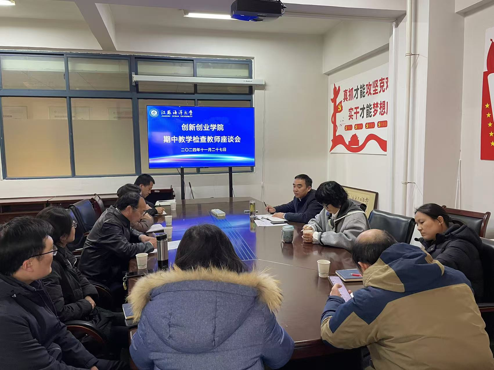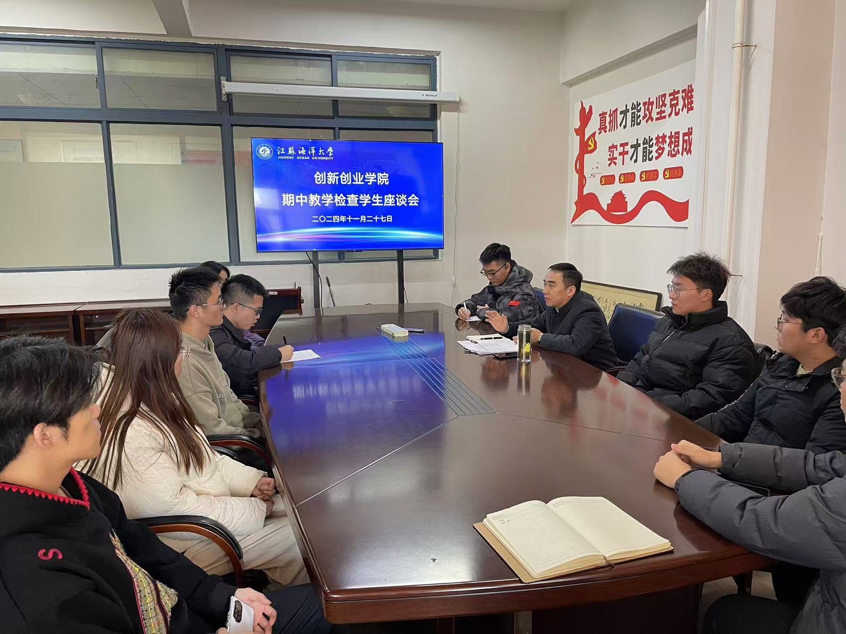 2024年11月27日下午,创新创业学院在会议室分别组织召开期中教学检查教师座谈会和学生座谈会。领航班各学院9名任课教师代表、领航班13名学生代表参加会议,学院副院长金孝红出席会议,会议由副院长隋福利主持。