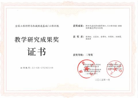 近日,教育部高等学校工科基础课程教学指导委员会、教育部高等学校机械基础课程教学指导分委员会和教育部高等学校工程训练教学指导委员会对工程材料与机械制造基础/工程训练教学研究项目(第三期)进行结题验收,并在优秀项目中评选教学研究成果奖。工程训练中心的教学成果《新时代高校劳动教育融入《工程训练》课程创新模式研究与实践》,顺利通过专家验收结题,并在优秀项目中评选中获得教学研究成果获二等奖。
