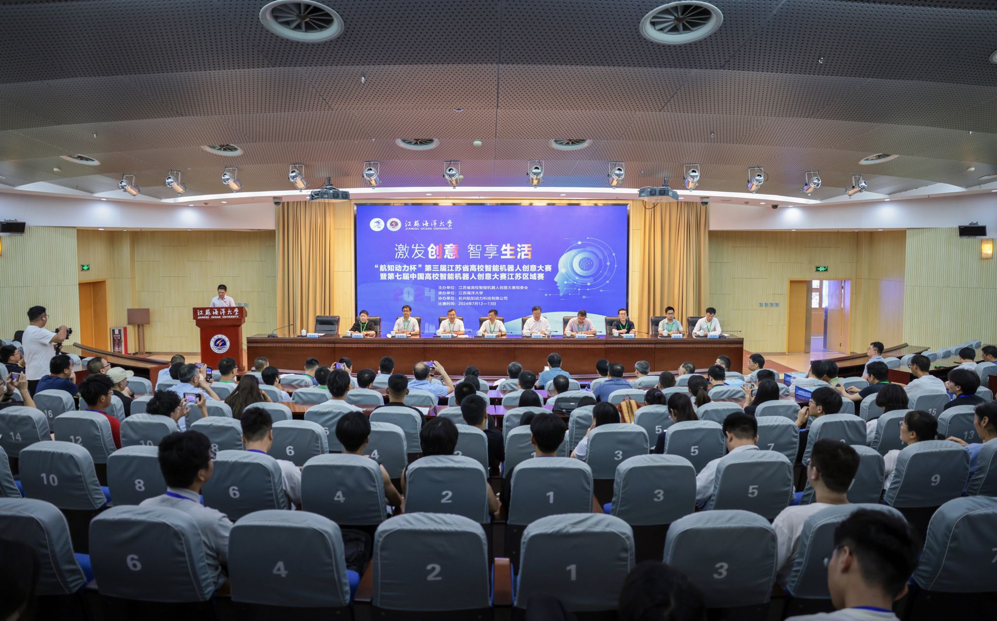 7月13日,“航知动力杯”第三届江苏省高校智能机器人创意大赛暨第七届中国高校智能机器人创意大赛江苏区域赛在我校举办。比赛由江苏省高校智能机器人创意大赛组委会主办,我校承办。校长宁晓明、中国高校智能机器人创意大赛专家委员会秘书长顾大强、江苏省高校智能机器人创意大赛组委会秘书长龚俊杰、副校长张元良出席开幕式。开幕式由创新创业学院常务副院长陈劲松主持。