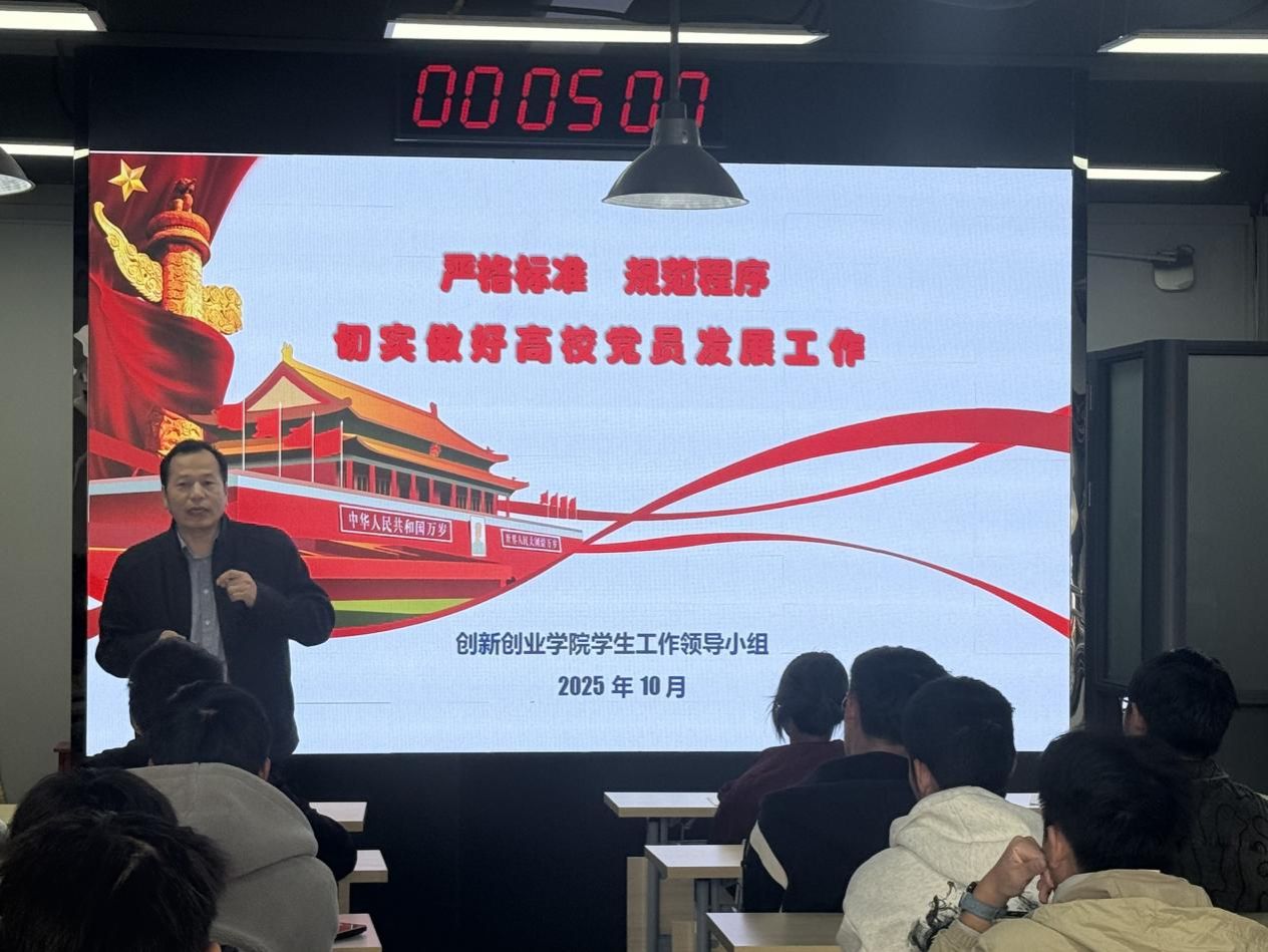 10月27日下午,创新创业学院在定海楼S503开展入党启蒙专题讲座,学院副院长金孝红主讲,2025级全体新生参加讲座。