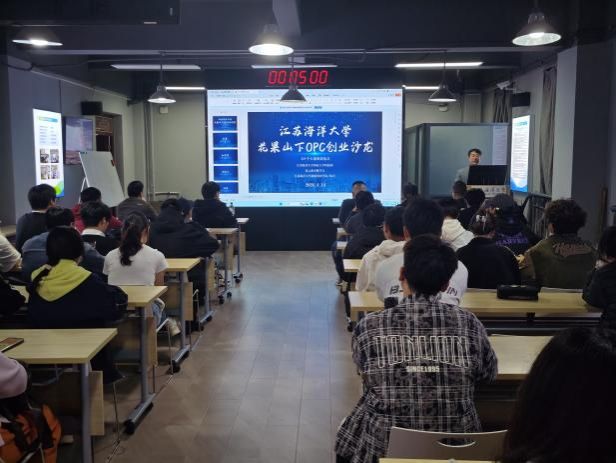 2026年4月14日,江苏海洋大学花果山下OPC创业沙龙活动在定海楼S503室顺利举办。本次活动由江苏海洋大学国家大学科技园主办,连云港市数学会、江苏海洋大学创新创业学院承办。为搭建专业交流平台,推动OPC(一人公司)“超级个体+AI”新型创业模式在本地工业设计领域落地创新,特举办本次主题沙龙。活动由连云港市数学会副会长、江苏海洋大学理学院副教授於遒主持,江苏华域空天低空综合服务有限公司总经理胡宗义、合伙人张馨,玉兰高新区工业设计OPC负责人赵华雷作为特邀嘉宾。